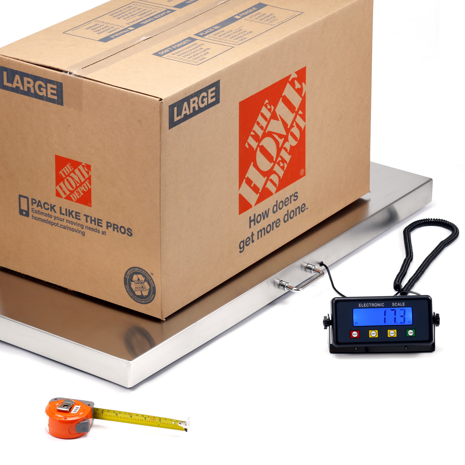 | Materials: | Pan: stainless steel Scale frame: steel Load cell: aluminum alloy Display housing: ABS plastic |