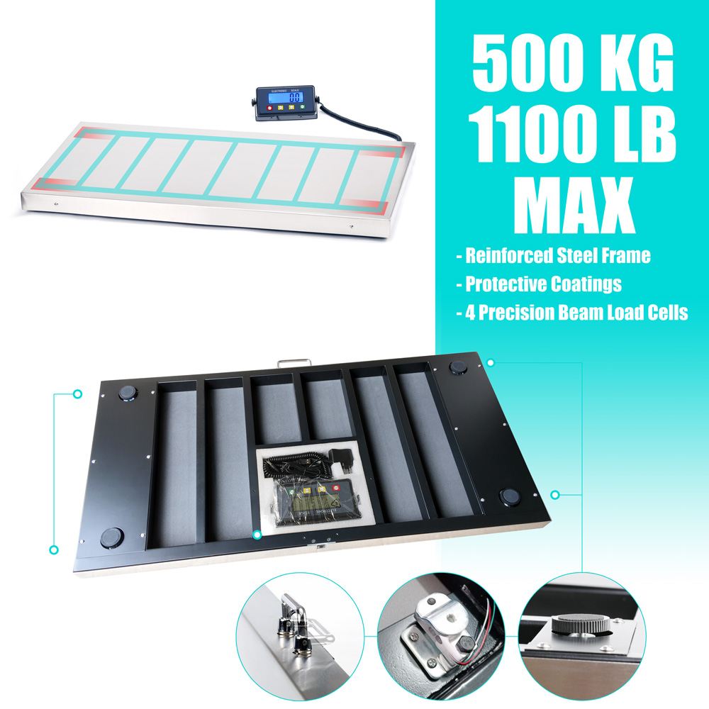- Reinforced steel base frame with protective coating. 4 individually adjustable legs for easy leveling setup and better weighing precision.